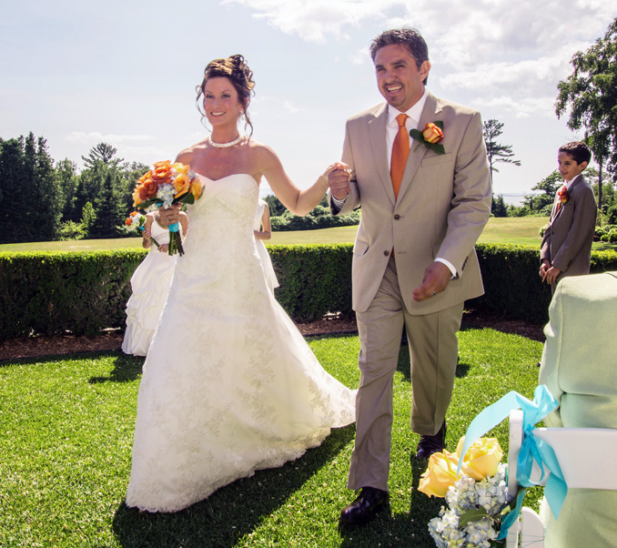 Maggie and Greg had a stunning Mackinac Island wedding at the Inn at Stonecliffe. The outdoor setting overlooking the Mackinac Bridge was picture-perfect.